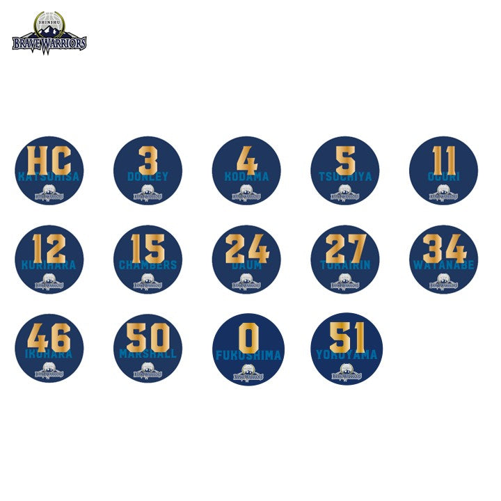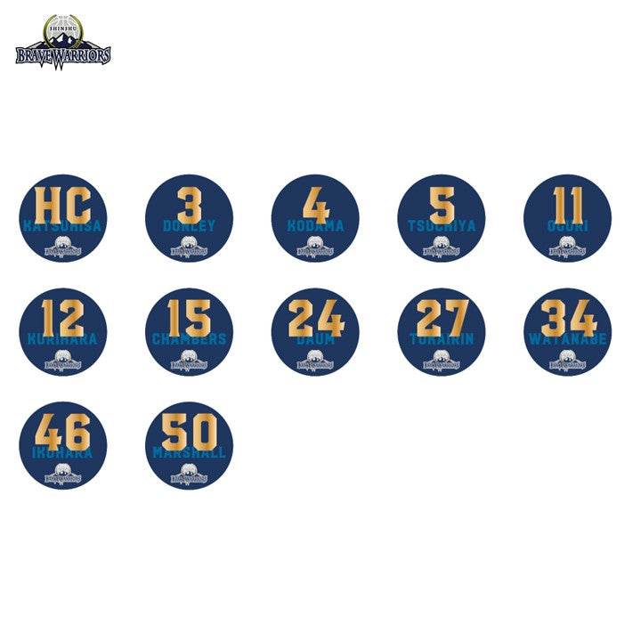 25-26 選手別缶バッチは、ネイビーカラーに箔押し加工が施された、かっこいいデザインが特徴。