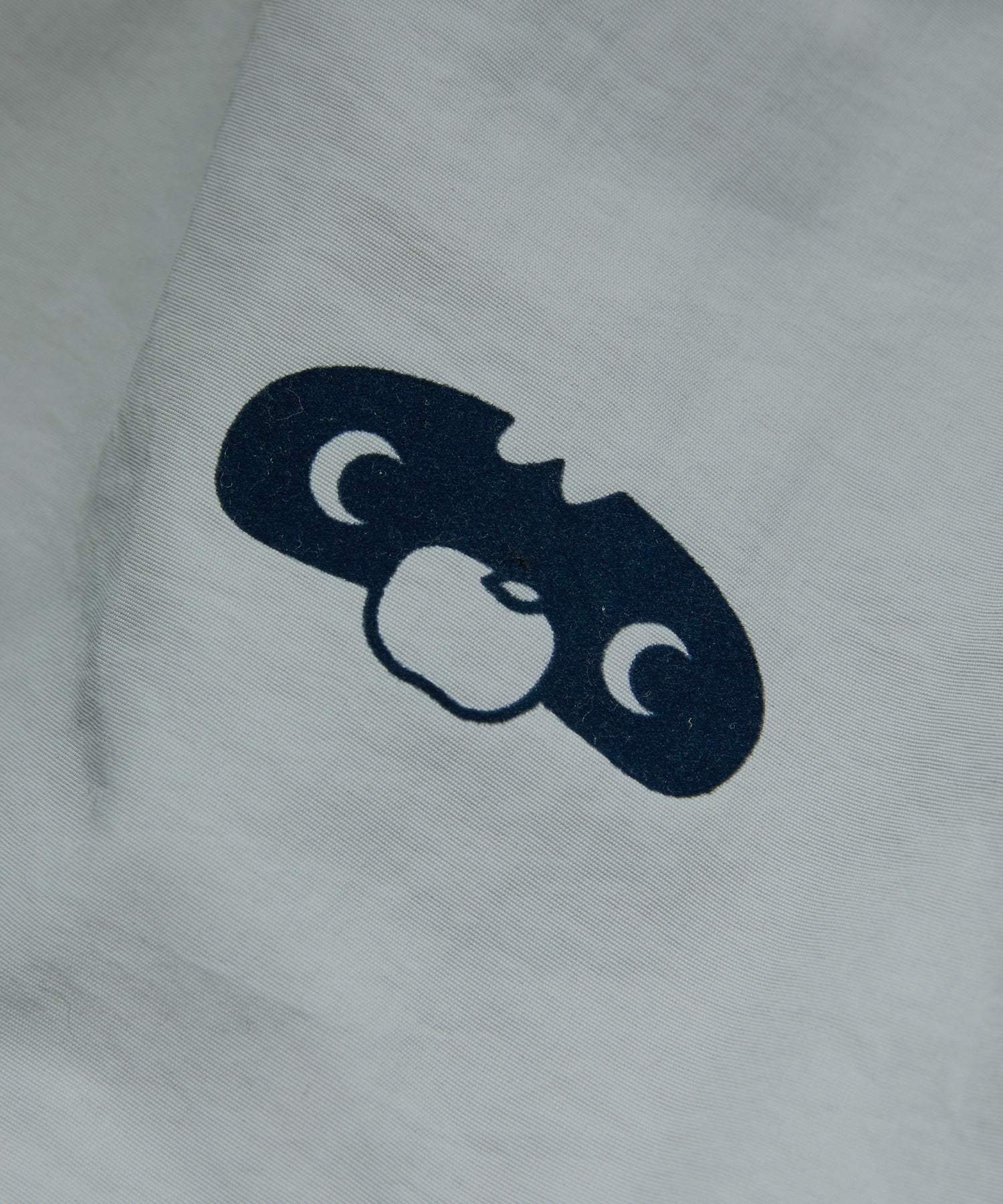 右胸にカレッジスポーツ風ロゴ、左胸にブレアーの愛くるしい目と鼻をフロッキープリントしたナイロンアノラック。