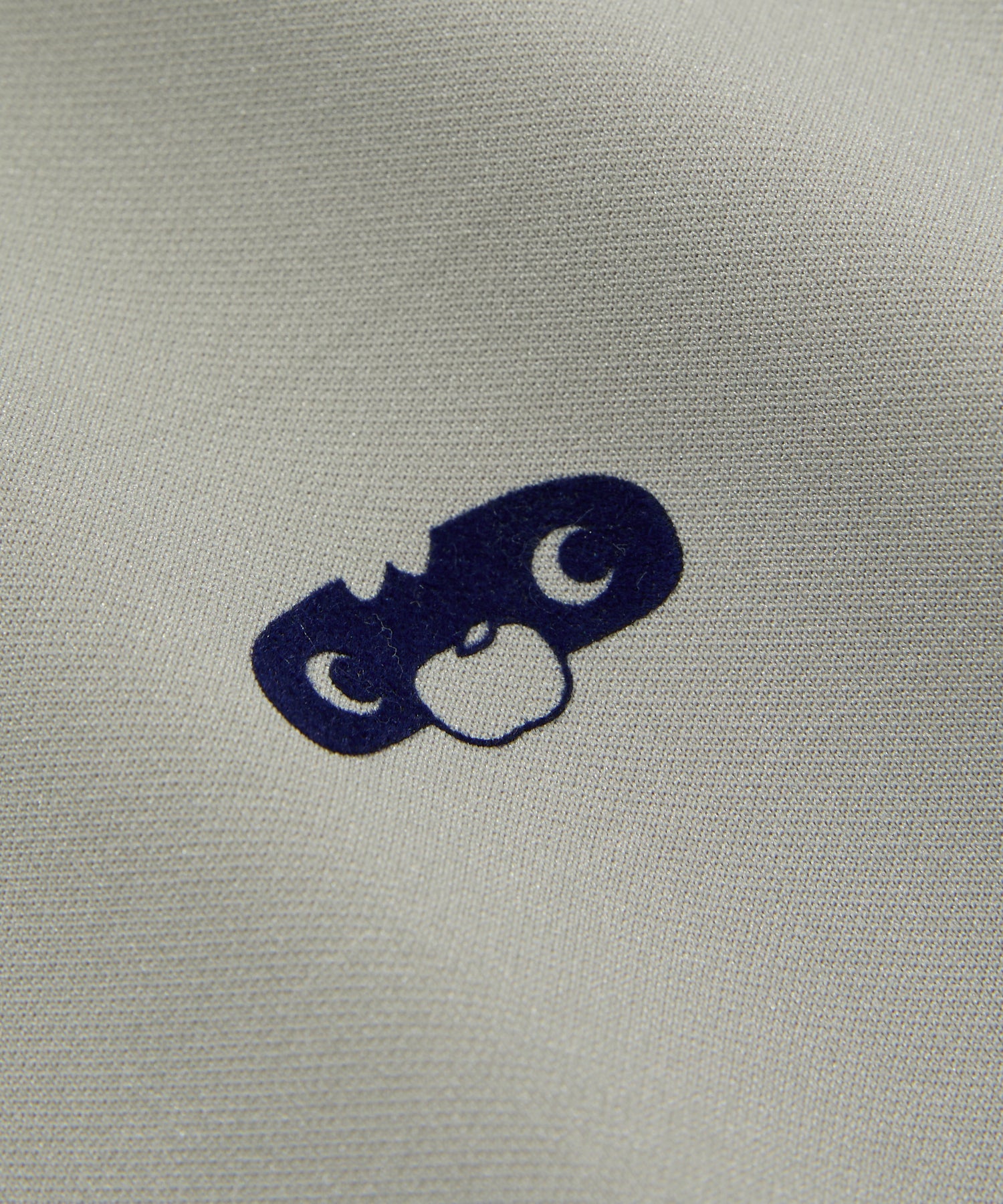 右胸にはスウェットと同じカレッジスポーツ風のロゴ、左胸にはブレアーの愛くるしい目と鼻をフロッキープリントで施した特別なジャージ。