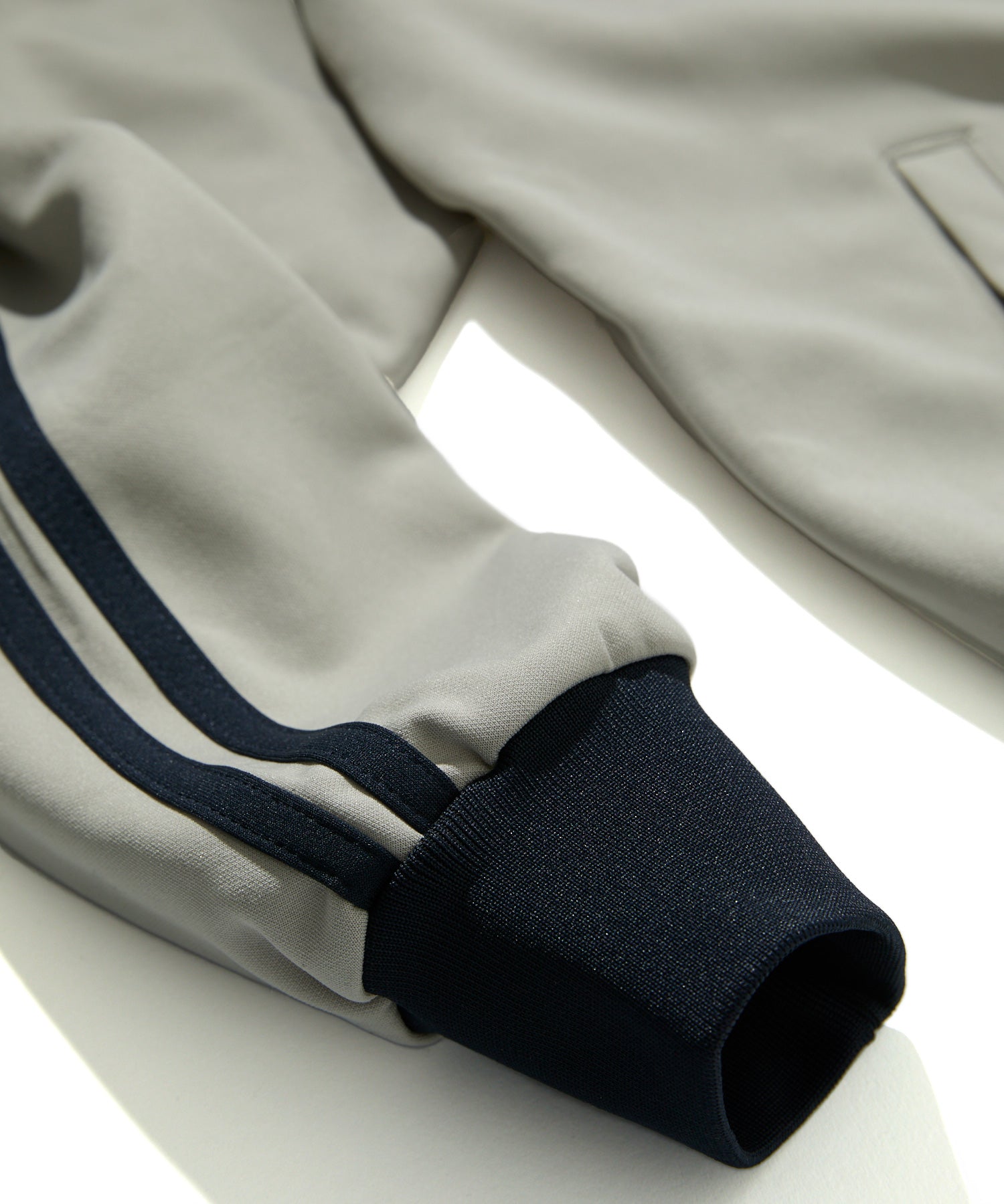 適度な光沢感のある素材に、クラシカルなサイドラインとダブルファスナーを採用することで、スポーティーでありながらファッション性も兼ね備えた一着。